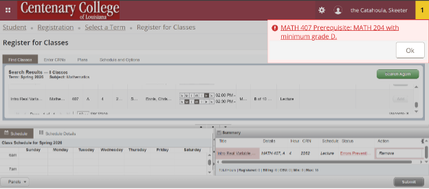 The Co-requisite error occurs when students do not register for a group of courses that are linked together. Resolution: Students must register for all co-requisite courses at the same time.