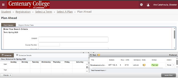 Log into Banner Web, click Registration and Courses, then Plan Ahead for Registration. You can either use the Search for Classes or Enter CRNs option. After you’ve identified the course, click Add to Summary, and repeat until you’ve entered all courses. Upon completion, under the summary panel, click on submit.
